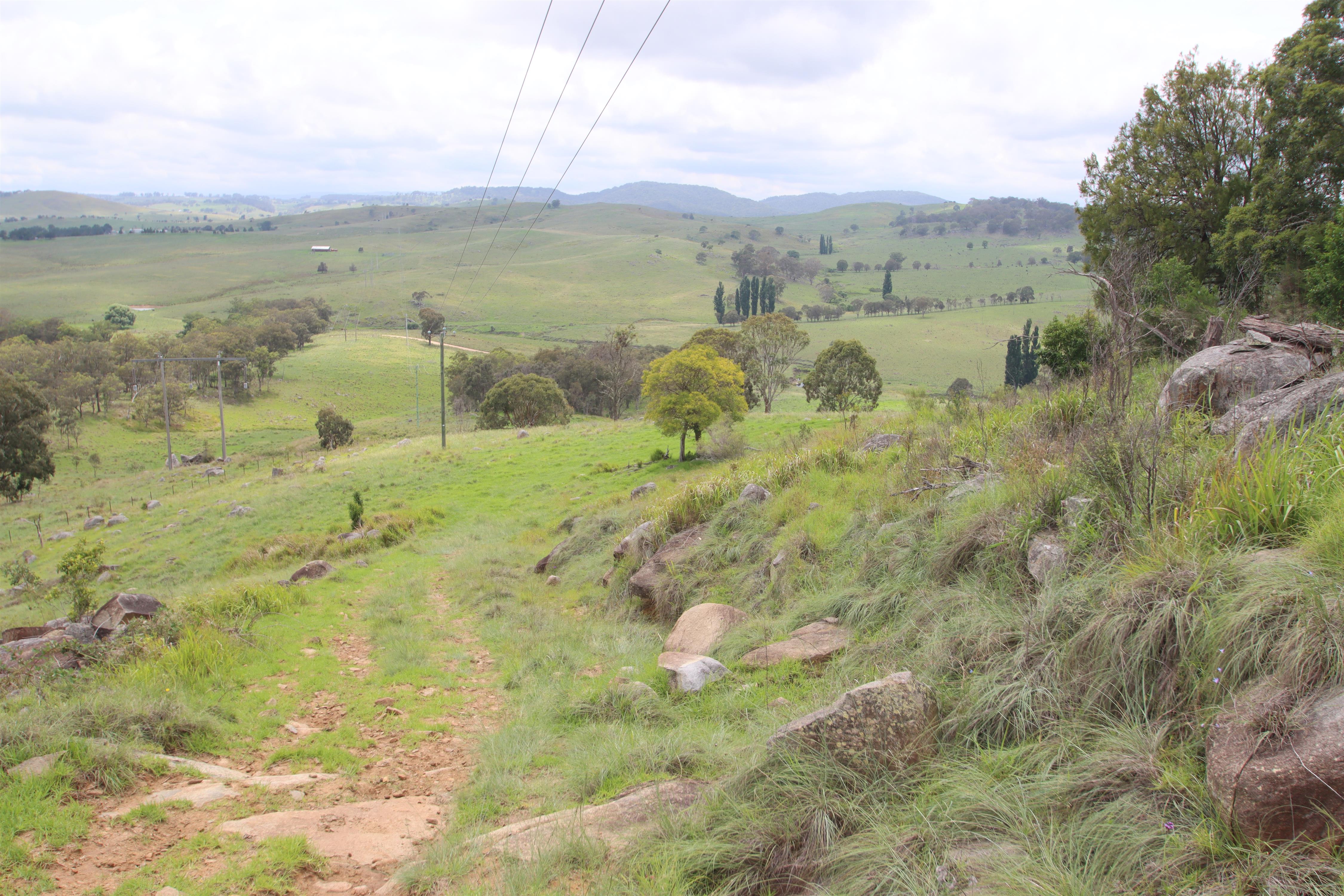 Blue granite grazing Rarely available are these blocks on the eastern fall of Tenterfield, approximately 7km from town with mostly bitumen then good gravel road access. There is access to Barney Downs Creek, 2 dams and a well. Some fabulous building sites in elevated areas, panoramic views in most directions, power traverses the property. Numerous rocky outcrops, great shelter belts and plenty of good pastures for grazing, fully fenced with fences in good condition. This is a sound blue granite grazing block of 110 acres in the tightly held Barney Downs district. This handy block runs 30 breeders.